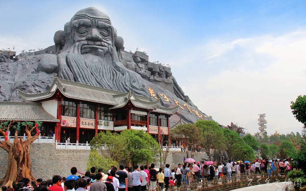 五千年文博園為了弘揚道教文化,重金塑造老子像,是目前世界上最大、最高的老子像,高35米,形象設(shè)計為兩手臂張開,長為185米,雙目微閉像是在沉思、輪廓鮮明、從容慈祥、高大挺拔,不僅從形象創(chuàng)意和藝術(shù)處理上都透露出圣人的智慧和雄偉氣勢,生動再現(xiàn)了老子一生為了弘揚和發(fā)展自己的思想,不畏艱辛,探索治國安邦的豪情壯志,給后人留下了不朽的思想和精神,與其上雕刻的“老子天下第一”相應(yīng)。