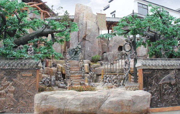 坐落于五千年文化長廊的花果山景區(qū),其占地面積大概70多平方米,它將中國四大名著《西游記》中孫悟空的猴穴呈現(xiàn)在此。期間雕刻了各種形態(tài)不一的猴像,形象生動,栩栩如生,借此也呈現(xiàn)了五千年文博園傳承和發(fā)展了四大名著文化。