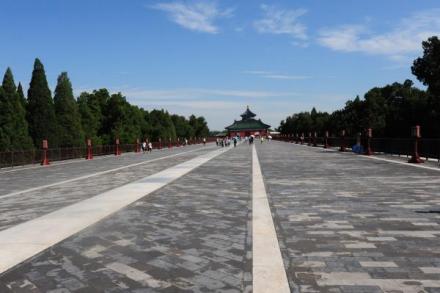 欞星門:設于圜丘墻外,是古代祭壇壝墻專用門式,形似牌坊,以漢白玉石雕造。天壇圜丘內(nèi)外墻各設門四組,每組三門,共設欞星門八組24座,稱“云門玉立”。 三音石:為皇穹宇殿前御路的第三塊石板,因站在石上擊掌一次卻能聽到三個回音而得名。三音石恰于圓形回音壁的圓心位置,從這里發(fā)出的聲波經(jīng)由東、西配殿和回音壁墻面的反射,均能回到圓心;又因兩個反射體到圓心的距離差別較大,所以能聽到三聲回音。