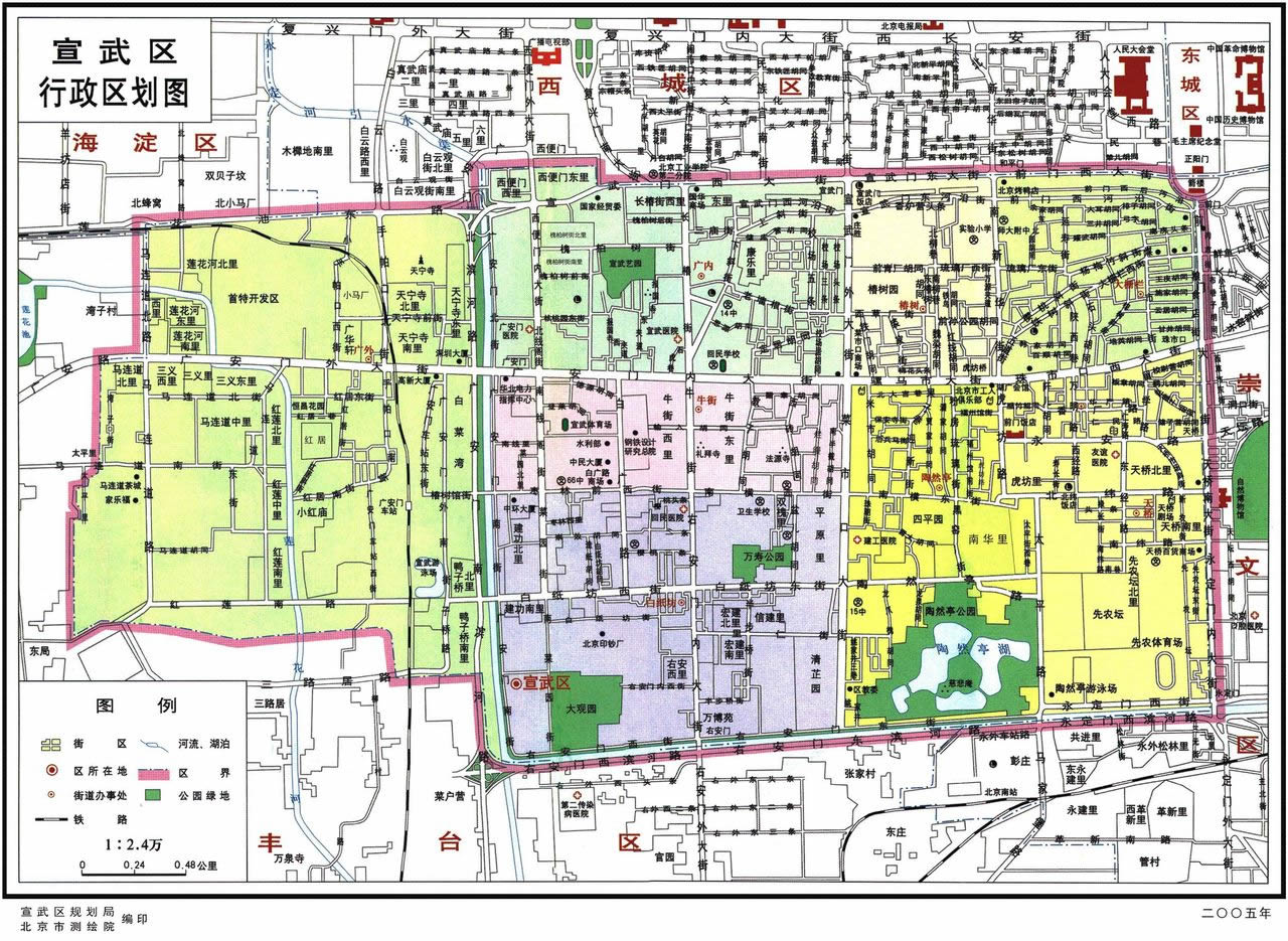 宣武區(qū)轄8個(gè)街道:大柵欄街道、天橋街道、椿樹(shù)街道、陶然亭街道、廣安門(mén)內(nèi)街道、牛街街道、白紙坊街道、廣安門(mén)外街道。