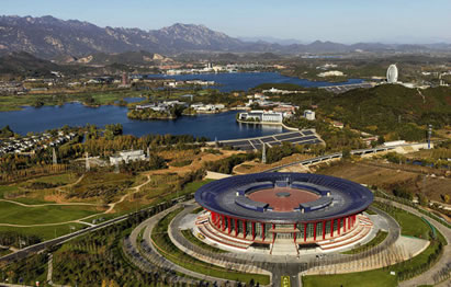 北京雁棲湖國際會展中心位于雁棲湖西南側(cè),坐落于范崎路上,建筑主體是圓形大樓,建筑造型外觀似天壇無蓋,寓意天圓地方,設(shè)計風(fēng)格與雁棲島上的雁棲湖國際會議中心相輔相成。主要功能是供各大公司 產(chǎn)品發(fā)布、展覽等等,2015年第五屆北京國際電影節(jié)開閉幕式舉辦地。