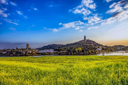 景區(qū)既是宋初著名道教學(xué)者和道教詩人陳摶的故鄉(xiāng),又是“中國最美油菜花海”。油菜花核心區(qū)種植面積達(dá)3萬余畝,其中以油菜為主要背景、小麥為配景種植的中國最大油菜花太極圖案,直徑達(dá)236米。花海泛舟,春風(fēng)佛面,清澈的瓊江穿境而過,形成了“十里菜花、黃金鋪地”的壯美景觀。2008開始,已經(jīng)連續(xù)舉辦了十二屆菜花節(jié),2009年,潼南油菜花景區(qū)被評為“中國最美的油菜花海”之一,2010年被評為“重慶十大春季旅游目的地”之一。