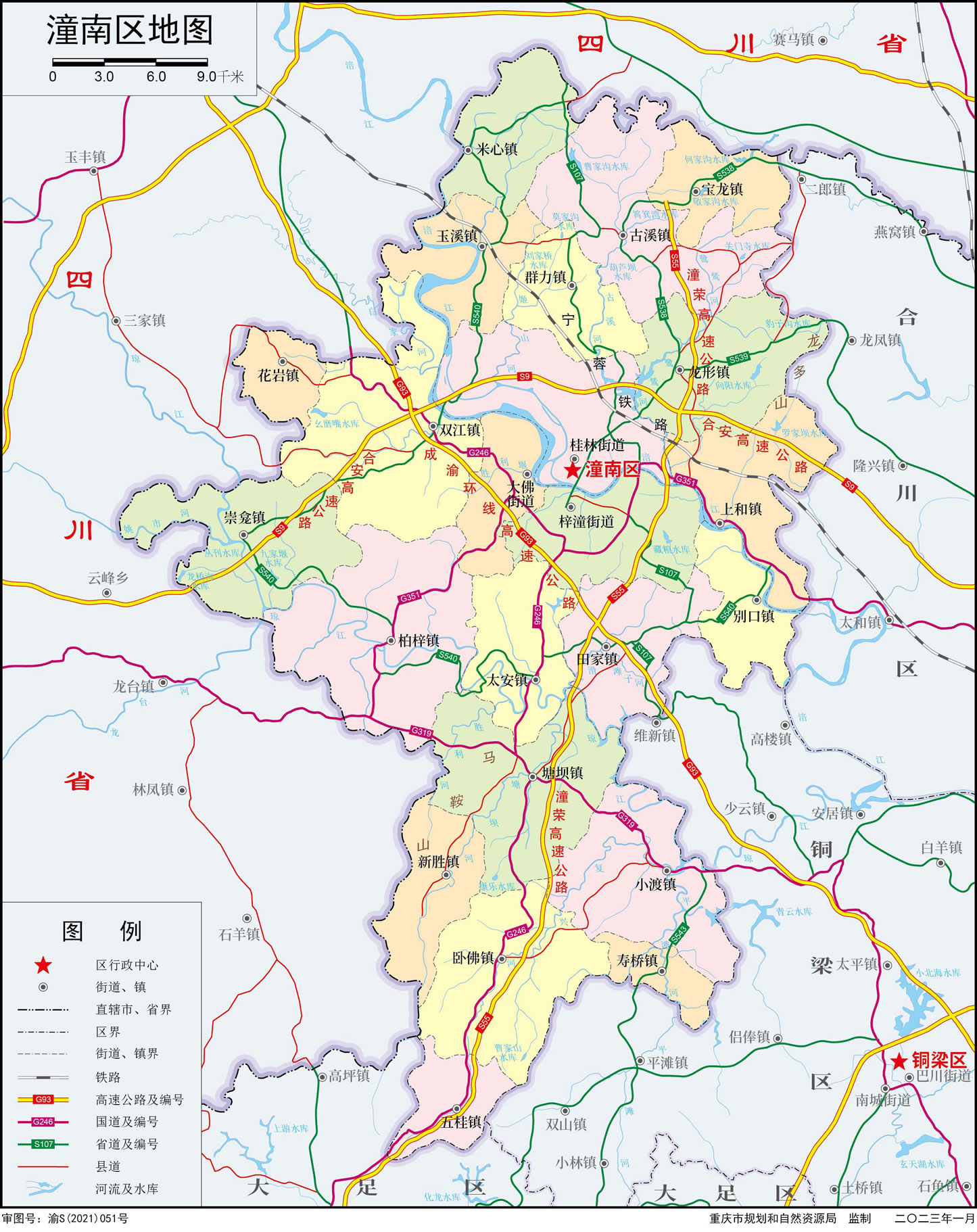 潼南區(qū),隸屬重慶市,位于重慶西北部、渝西地區(qū),是成渝新型工業(yè)基地、渝西生態(tài)文化旅游目的地、中國西部綠色菜都,成渝地區(qū)雙城經(jīng)濟圈核心板塊,是全國首批現(xiàn)代農(nóng)業(yè)示范區(qū)、國家衛(wèi)生城區(qū)和重慶主城都市區(qū)“橋頭堡”城市 。潼南屬盆地淺丘地貌,地勢平坦,海拔高度300—450米;氣候?qū)賮啛釒駶櫦撅L(fēng)氣候?偯娣e1583平方千米;潼南區(qū)常住人口68.11萬人。潼南區(qū)轄3個街道、20個鎮(zhèn),區(qū)人民政府駐桂林街道興潼大道120號。