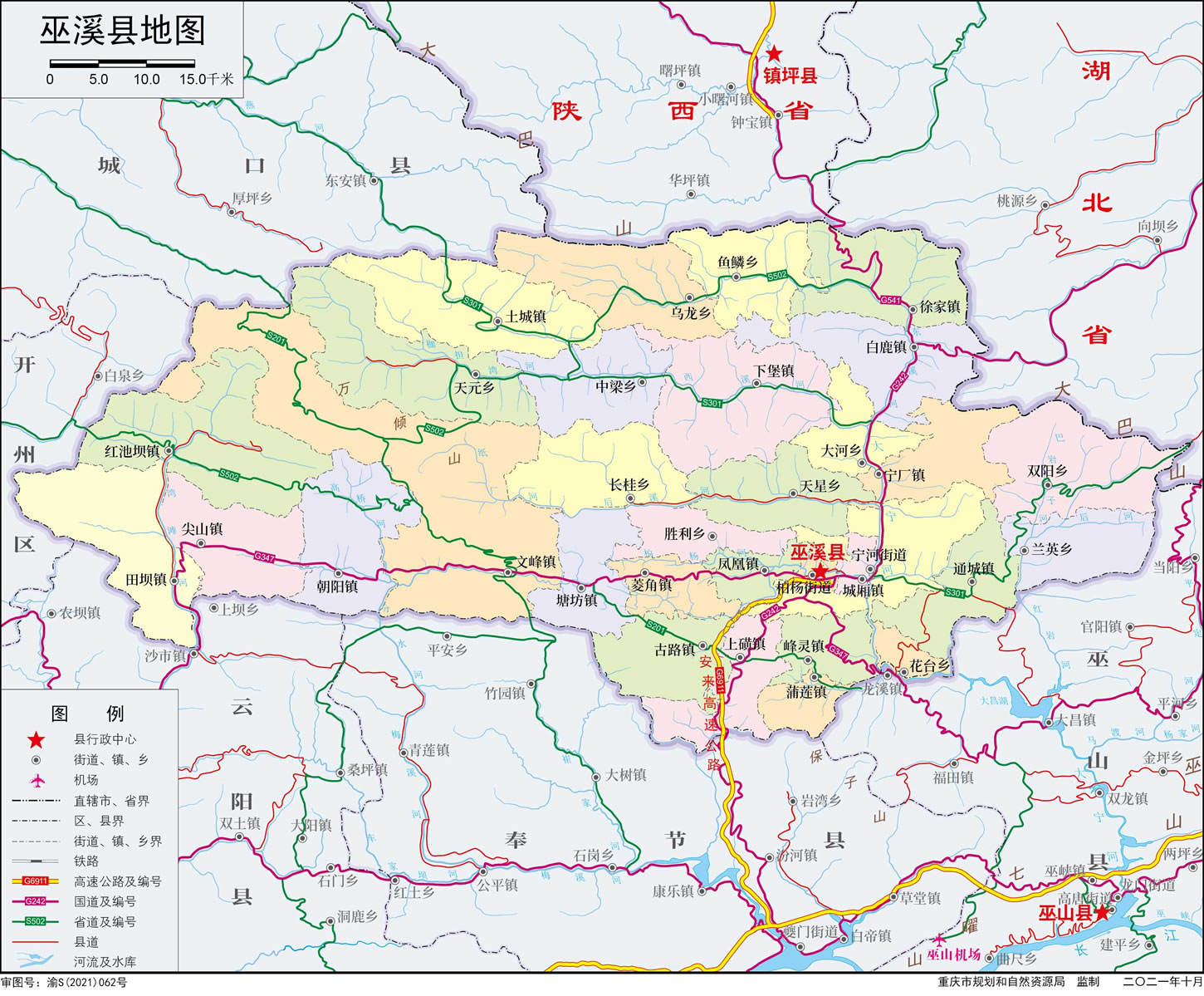 巫溪縣轄2個(gè)街道、19個(gè)鎮(zhèn)、11個(gè)鄉(xiāng):