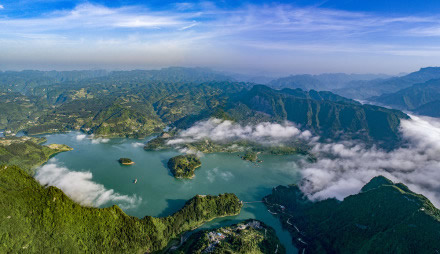 重慶黔江小南海國家地質(zhì)公園,位于重慶市黔江區(qū)小南海鎮(zhèn)南海村,重慶與湖北交界處,距黔江城北部30余千米。是一個融山、海、島、峽諸風(fēng)光于一體的高山淡水湮(堰)塞湖泊,也是中國國內(nèi)迄今保存最完整的一處古地震遺址。