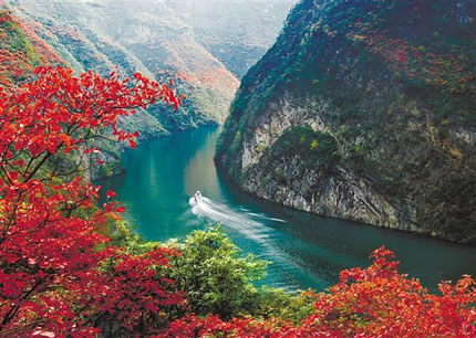 巫山的氣溫給紅葉創(chuàng)造最佳生長和形成時(shí)機(jī)。三峽庫區(qū)蓄水達(dá)到170.9米,江、山、紅葉三位一體,高峽平湖與漫山紅葉交相輝映。巫山紅葉集中連片有6700公頃,其中以小三峽的巴霧峽最為集中。秋季漫山紅葉,層林盡染,游客既可乘車上山,隨公路盤旋觀賞紅葉景觀,亦可坐船仰望兩岸紅葉,還可以徒步林中小道近距離觀賞紅葉。