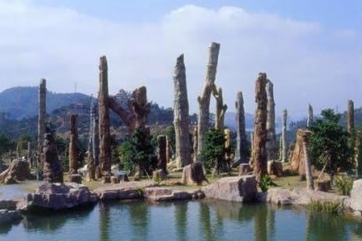 化石森林景區(qū)由四部分組成:化石森林、深圳古生物博物館、香港回歸紀(jì)念林、桃花園;謴1997年開(kāi)始籌建,占地2萬(wàn)平方米,收集引進(jìn)了來(lái)自遼寧、新疆和內(nèi)蒙古等地的硅化木500多株。這些硅化木經(jīng)專家鑒定屬松杉類植物,形成于一億五千萬(wàn)年至七千萬(wàn)年的中生代時(shí)期。那時(shí)正是球果類植物演化史中最鼎盛的時(shí)期,高大的樹(shù)木由于激烈的地殼運(yùn)動(dòng)而被埋在地層之下,經(jīng)過(guò)硅化作用形成了化石。迄今,這是世界上唯一一座大型遷地保存的化石森林。古生物博物館利用化石、圖片、多媒體技術(shù)等材料以一種系統(tǒng)完整和易于理解的方式解釋了地球上生命的歷史。