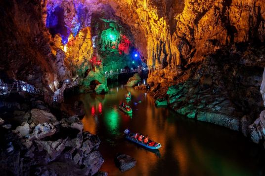 廣西平果通天河景區(qū)又稱“敢沫巖”、“紅軍巖”,是一個(gè)溶洞暗河型景區(qū),位于平果市黎明鄉(xiāng)208省道旁,地處平果平治河巖溶自治區(qū)級(jí)地質(zhì)公園核心。通天河景區(qū)于2013年被評(píng)為國(guó)家AAAA景區(qū)。景區(qū)地理位置優(yōu)越,東距大化紅水河28千米,可連接大化七百弄等景點(diǎn);北距巴馬縣63千米,208省道直達(dá),適合與巴馬連線旅游,可連接“東巴鳳”各景點(diǎn);西可連接百色、德天瀑布、通靈大峽谷等景點(diǎn);南距南寧190千米,可連接南寧、北海等景點(diǎn)。