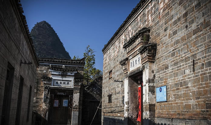 在明洪武年間,山東一位被貶的秦姓官員千里跋涉來到桂北地區(qū),據(jù)村民說,他們是唐代名將秦瓊的后人。后來秦氏的一支看中了水源頭村自周的山形地勢(shì),于是選取了這個(gè)“風(fēng)水寶地”落下根基。經(jīng)過多年繁衍,漸成規(guī)模。在后籠山下,依山勢(shì)拾級(jí)而建成了成片的大宅子,當(dāng)?shù)厝朔Q其為“秦家大院”。這些宅子基本為三進(jìn)三開,房屋分為四組,組與組間隔兩米,形成狹長的巷道,均以青石板鋪筑。宅子的高堂、戲院、花廳都敞開大門,兩旁房子的大門朝里開,很有意思。宅子的墻壁都以幾噸重的青石方墩為基,砌上1米多后,改用青磚砌至屋頂,很獨(dú)特。高大敞亮的上層樓房,窗戶上鑲嵌的窗花是琉璃瓦燒制而成,上面還畫著花卉,溫婉中透著古色古香。房中的板壁上刻著各種花紋的圖案,庭柱下的石礅上鑿有龍鳳的花飾,精細(xì)美觀。