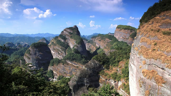 八角寨地處湘桂交界的、五嶺山脈里最長者越城嶺山脈(長達二百多公里)西北側(cè)的余脈(廣義崀山即以崀山為代表的跨越新寧縣和資源縣的整條山或大崀山),屬典型的丹霞地貌,有關(guān)專家譽為“丹霞之魂、國家瑰寶 ”,“中國最美的七大丹霞”之一。