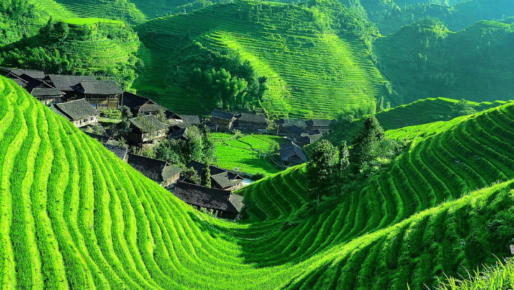 龍脊梯田,因山脈如龍的背脊而得名,是廣西著名風(fēng)景區(qū),始建于元朝,有近700年的歷史。龍脊梯田景區(qū)主要分為平安壯寨梯田和金坑紅瑤梯田。平安壯寨梯田有“七星伴月”和“九龍五虎”兩大著名景觀;金坑紅瑤梯田有“大界千層天梯”,“西山韶樂”和“金佛頂”三大著名景觀。這里的壯、瑤民族世世代代居住在青瓦木樓之中,淳樸善良。金竹壯寨被聯(lián)合國(guó)教科文組織稱為北壯的楷模;黃洛紅瑤寨獲上海大世界吉尼斯集體長(zhǎng)發(fā)村之最;龍脊古壯寨至今保留著許多文物古跡。