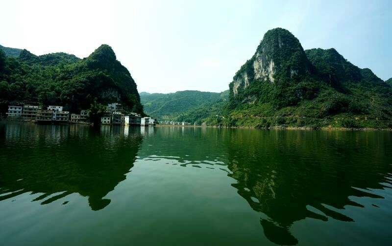 石馬湖,是鳳山縣最大的高山天然湖泊,湖面海拔640米,冬季湖面為100公頃。夏季湖面為150公頃。石馬湖是由一條地表河流直入下牙溶洞,因地表沖積物堵塞落水處,水位提高而形成,這是喀斯特地貌中規(guī)模較大的天然湖泊。湖岸壯族古式木樓風(fēng)格別俱。