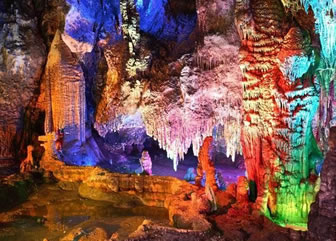 龍宮水溶洞長達(dá)15公里,為國內(nèi)之冠。景區(qū)對外開放了二段,長1260米,洞內(nèi)鐘乳千姿百態(tài),與北方溶洞相比更顯細(xì)致與精巧,與南方溶洞相比更顯神秘與奇特,其洞廳構(gòu)造宛如神話中的龍王宮殿!暗叵吕旖⑻焐鲜帧钡娜芏达L(fēng)景價(jià)值,是目前國內(nèi)已發(fā)現(xiàn)的其它同類型景區(qū)中無以比擬的,大詩人艾青稱“大自然的大奇跡”,國畫大師劉海粟譽(yù)“天下奇觀”,全國溶洞專家感嘆“覽龍宮知天下水洞,蕩輕舟臨人間仙境”!吧讲辉诟,有仙則名,水不在深,有龍則靈”,龍宮就是這樣的人間天堂。