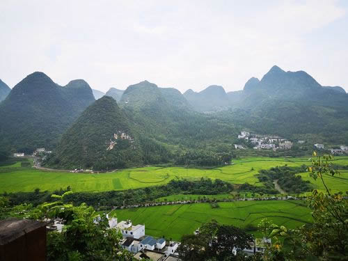 從地質(zhì)學(xué)的角度看,北部為峰林盆地,中南部為峰林洼地和峰叢山地,峰林、峰叢大多為呈錐形,部分為鐘狀、平頂狀和馬鞍狀,堪稱一座“中國錐狀喀斯特博物館”。南北兩段峰林也各具特色,北部峰林如同一道屏風(fēng),護(hù)佑著耳寨、魚隴、雙生、樂立一帶的村寨田園。這里奇峰如林,田壩似錦,河水如帶,村寨如云,充滿詩情畫意,恰似一幅樸素、清麗的布依族織錦。