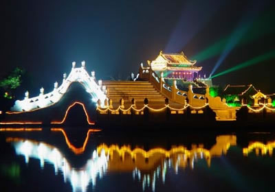 開封是中國六大古都之一,作為北宋王朝的都城達(dá)167年之久。當(dāng)時(shí)的宋京極為繁盛,宮殿建筑很輝煌。可惜金人侵占開封時(shí),宋皇宮建筑大部分被燒毀了。后來,又經(jīng)過多次兵燹和黃河決堤,宏偉的宮室已蕩然無存。在過去皇宮遺址上只留下了龍亭公園這座的建筑物,而這座龍亭公園卻是清代所建。龍亭公園坐北朝南,高踞在臺(tái)基之上。從地面到大殿有72級(jí)臺(tái)階。臺(tái)階中間是雕有云龍圖案的石階。登上平臺(tái),四周有石欄圍繞。大殿是木結(jié)構(gòu),重檐歇山式建筑,很壯觀。游人登上平臺(tái),入殿觀看陳列的文物后,多在石欄前眺望開封古城景色。龍亭公園前有一條筆直的大道,道旁有兩個(gè)東西對(duì)峙的湖,東為潘湖,西為楊湖。傳說,東湖為宋朝“太師”潘美的府第,他陷害忠良,是個(gè)奸臣,宅院里的湖,水是渾的;西湖為宋朝搞遼名將楊業(yè)的府第,他舍身救國,是個(gè)忠臣,宅院里的湖,水是清的。這個(gè)說法沒有科學(xué)根據(jù),但反映了人們對(duì)忠奸的態(tài)度和感情,F(xiàn)在龍亭公園,潘、楊兩湖,以及龍亭公園后面的假山花園,都辟為龍亭公園公園。從龍亭公園前的大道,過潘、楊兩湖,再往南,仍是一條筆直的大道,兩旁店鋪林立,這條大道歷史上是一條寬闊的御道。