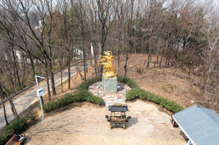 鎖情臺高19米,臺上立有天下第一同心鎖,鎖內(nèi)設(shè)置月老和觀音塑像,鎖情臺上還有許愿瓶、海誓山盟墻等供游客表情達意、許諾盟誓,是后人在龍霓山頂根據(jù)知音文化的傳承而建。