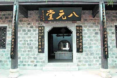 八元堂,又名寧鄉(xiāng)會館,座落在古鎮(zhèn)保健街上,建成于清咸豐十一年(1861年)。在晚清時期,靖港是溈水河入湘江的天然良港和商埠,昔日寧鄉(xiāng)的谷米、煤炭、油鹽等都是在此集散,來靖港從業(yè)的寧鄉(xiāng)人接近四千人,“西接湖垸,金稻銀棉憑集散;東依湘溈,風帆云影任驅馳!北闶窃娙藢Φ锰飒毢竦木父酃沛(zhèn)的頌贊,它在當時是一個管理寧鄉(xiāng)船舶和谷米銷售的據(jù)點,也是為來靖港的寧鄉(xiāng)老鄉(xiāng)下榻休息和聯(lián)絡鄉(xiāng)情等的服務機構。
