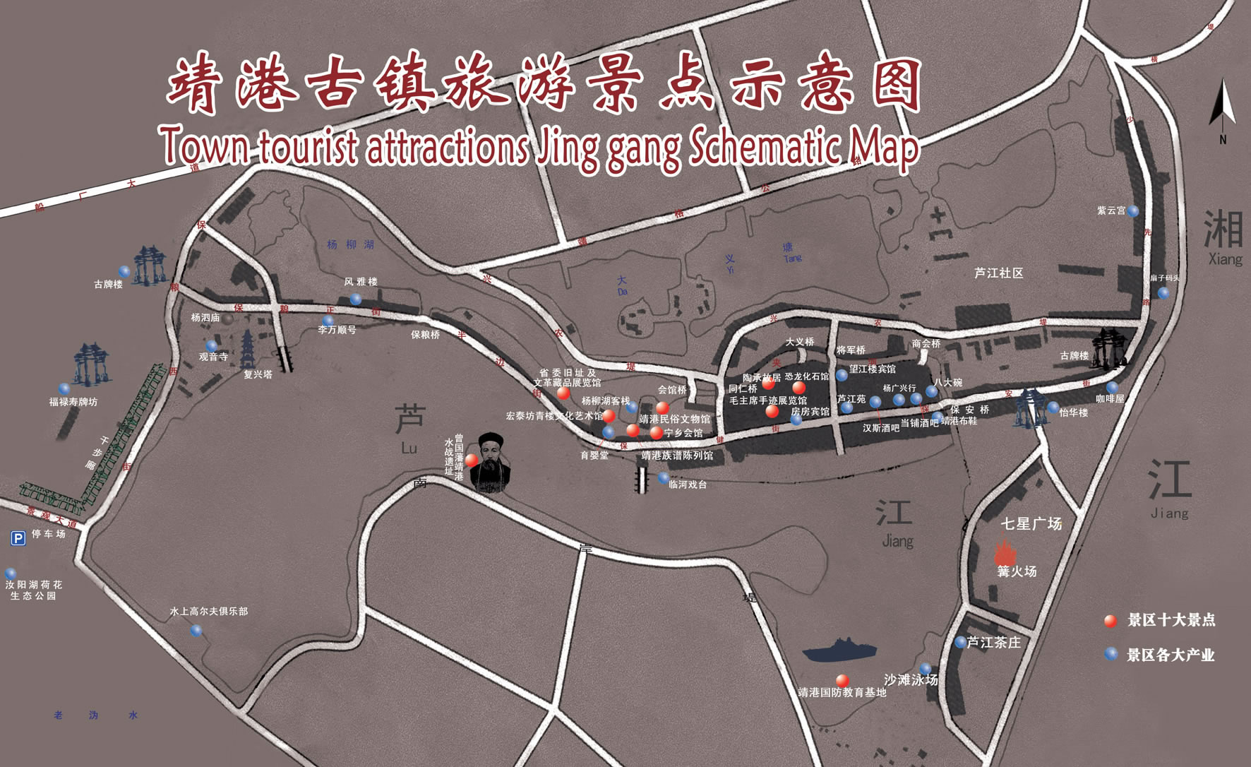 靖港,原名蘆江,地處溈水入湘江口,多洲灘,蘆葦叢生,故名。唐武德四年,內亂頻仍,高祖皇帝李淵派大將軍李靖南下戡亂。李靖駐兵蘆江,“軍令嚴整,秋毫無犯,百姓德之,名其水曰靖港,以志不忘!庇谑牵J江始更名靖港。逮及清末民初,航運業(yè)日趨發(fā)達,靖港以其天然良港之優(yōu)勢,成為船只進出長沙的北大門和避風港,每天?康拇粩(shù)以千計。湘陰、益陽、寧鄉(xiāng)及本地糧食土產多在此集散,曾為湖南四大米市之一,商賈云集,市場活躍,時稱“小漢口”。當時流傳著一句俗語,“船到靖港口,順風也不走”,足見其盛。 古鎮(zhèn)現(xiàn)保存“8街4巷7碼頭”,民居1008棟,主街道長1275米,有數(shù)十處古商鋪、作坊、會館、廟宇和極具紀念意義的遺址,其中,“宏泰坊”、“寧鄉(xiāng)會館”、“當鋪”、“育嬰堂”等明清古建筑保存較為完好。原臨河所建房屋均為吊腳樓,獨具江南水鄉(xiāng)特色,蔚為壯觀。古鎮(zhèn)內遠近聞名的還有“復興塔”、“觀音廟”、“紫云宮”等數(shù)處宗教建筑,朝有千人作輯,夜有萬盞明燈,香火旺盛,場面壯觀。 2008年7月,靖港古鎮(zhèn)保護與開發(fā)正式啟動,同年9月,靖港鎮(zhèn)榮獲“中國歷史文化名鎮(zhèn)”稱號,古鎮(zhèn)的保護與開發(fā)已納入省、市重點工程。作為中國歷史文化名鎮(zhèn),靖港的發(fā)展目標定位為國家5A級旅游景點,成為長株潭城市群中獨具特色的都市型休閑度假基地。