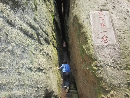 被稱為崀山第一絕的天下第一巷,全長(zhǎng)238.8米,兩側(cè)石壁高80—120余米,最寬處0.8米,最窄處0.33米,可謂世界一線天絕景。