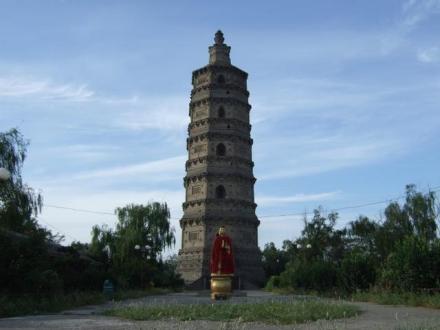 現(xiàn)今的塔仿南唐風(fēng)格,于1995年重建。塔體石雕,實(shí)心,長(zhǎng)柄鈴型,高12.77米,九級(jí)八面。塔身周?chē)惺穹鹣?4尊,玲瓏精致,栩栩如生,風(fēng)韻各異,神采紛呈,是步游者必賞之景。