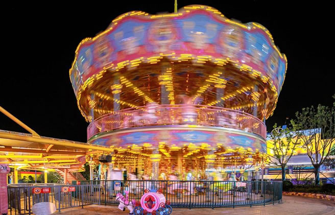 旋轉(zhuǎn)木馬:騎著木馬,伴隨著音樂奔騰旋轉(zhuǎn)。讓理性暫時逃離大腦皮層,腦海里的白馬躍然而上,腳踏祥云和春風(fēng)。