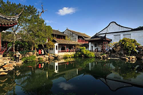 網(wǎng)師園,是蘇州典型的府宅園林。全園布局緊湊,建筑精巧,空間尺度比例協(xié)調(diào),以精致的造園布局,深蘊的文化內(nèi)涵,典雅的園林氣息,成為江南中小古典園林的代表作品。園內(nèi)的山水布置和景點題名蘊含著濃郁的隱逸氣息。乾隆末年園歸瞿遠(yuǎn)村,按原規(guī)模修復(fù)并增建亭宇,俗稱“瞿園”。今“網(wǎng)師園”規(guī)模、景物建筑是瞿園遺物,保持著舊時世家一組完整的住宅群及中型古典山水園。