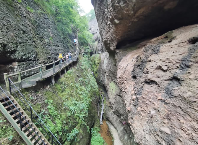 1. 一線天:峽谷最窄處僅60厘米,頂部巖縫透入陽光,形成光影交錯的神秘通道,需側身通過,全程設防滑石階與安全扶手。