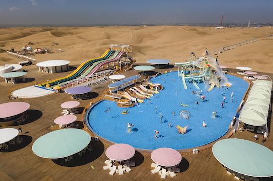 在沙漠中各種深淺的大型泳池里,以各種泳姿釋放自己——在沙丘起伏無際的沙漠里——在沙漠中屬于自己的水的世界里……累了,就躺在清爽的沙灘床上,美美地過上幾個(gè)小時(shí),同時(shí)可以與同行的人邊吃邊喝邊聊哦,別睡著了,演出一定會(huì)有的,悅沙島每天會(huì)有十多場不同的演出或比賽,是藝術(shù)的、是體育的……