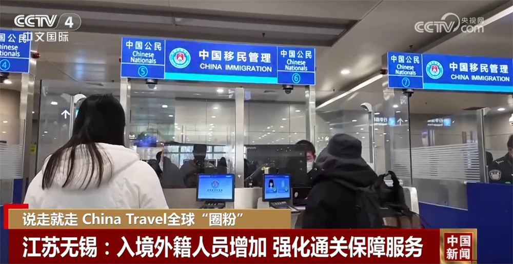 隨著外國人使用過境免簽新政入境人數(shù)的增加,為更好服務外籍人員,無錫公安出入境管理部門提前制定預案,全力做好通關(guān)保障服務。(來源:央視網(wǎng))