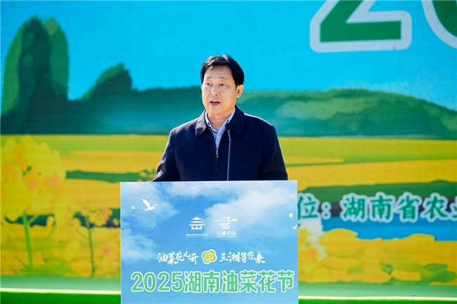 湖南省農(nóng)業(yè)農(nóng)村廳黨組成員、副廳長(zhǎng)龔昕在致辭中指出,近年來(lái),湖南省堅(jiān)決貫徹落實(shí)國(guó)家保障糧油安全決策部署,持續(xù)打造油料特色千億產(chǎn)業(yè),油菜種植面積從2019年的1861.5萬(wàn)畝擴(kuò)大到2024年的2255萬(wàn)畝,總產(chǎn)量達(dá)266.6萬(wàn)噸,油菜全產(chǎn)業(yè)鏈產(chǎn)值突破570億元。做大做優(yōu)做強(qiáng)油菜產(chǎn)業(yè),農(nóng)文旅融合是關(guān)鍵。舉辦湖南油菜花節(jié),就是要以花為媒、借花興業(yè),搭建起一個(gè)全方位展示湖南鄉(xiāng)村魅力的大舞臺(tái),推動(dòng)油菜產(chǎn)業(yè)多元化發(fā)展,帶動(dòng)鄉(xiāng)村全域富美強(qiáng)。