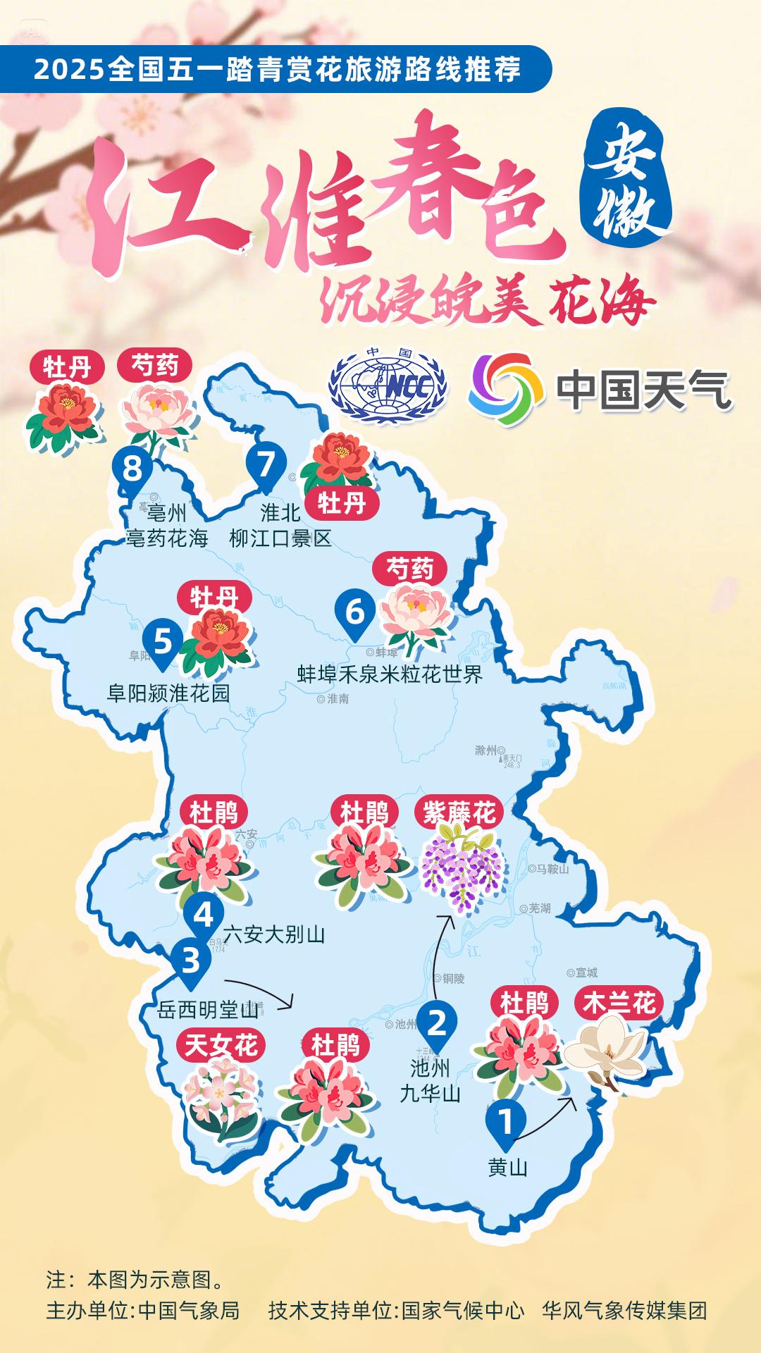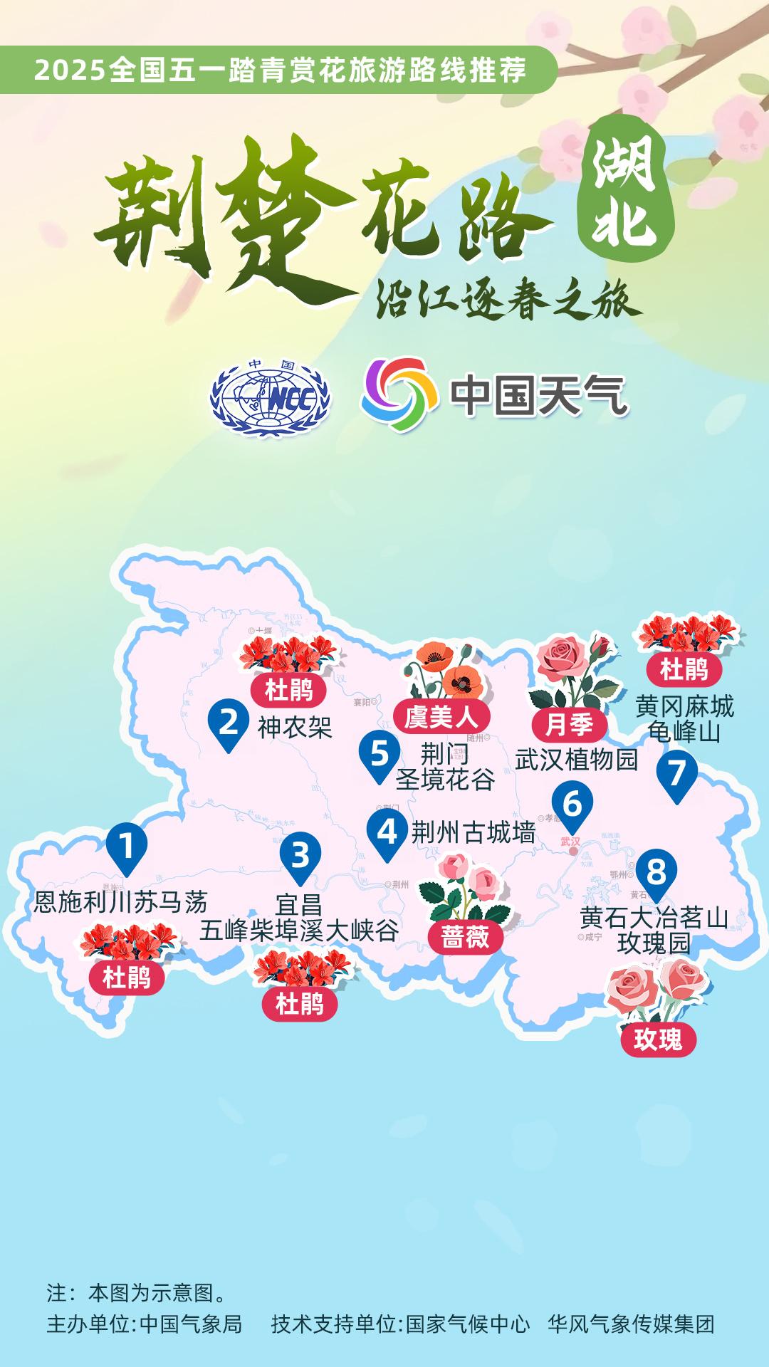 正值杏花、杜鵑花等春花盛放時(shí)節(jié),中國(guó)氣象局針對(duì)全國(guó)景點(diǎn)主要花品,對(duì)其生長(zhǎng)積溫和物候期進(jìn)行關(guān)聯(lián)性分析,建立多種花品的最佳觀賞期預(yù)報(bào)模型,提供賞花預(yù)報(bào)服務(wù)。在此基礎(chǔ)上,國(guó)家氣候中心、華風(fēng)氣象傳媒集團(tuán)依據(jù)歷史氣候資料和今年氣候預(yù)測(cè),參考花期模型預(yù)報(bào)結(jié)果,結(jié)合區(qū)域地理分布、小氣候特征和旅游景點(diǎn)等信息,推出4月下旬至5月上旬適宜踏青賞花的線路。