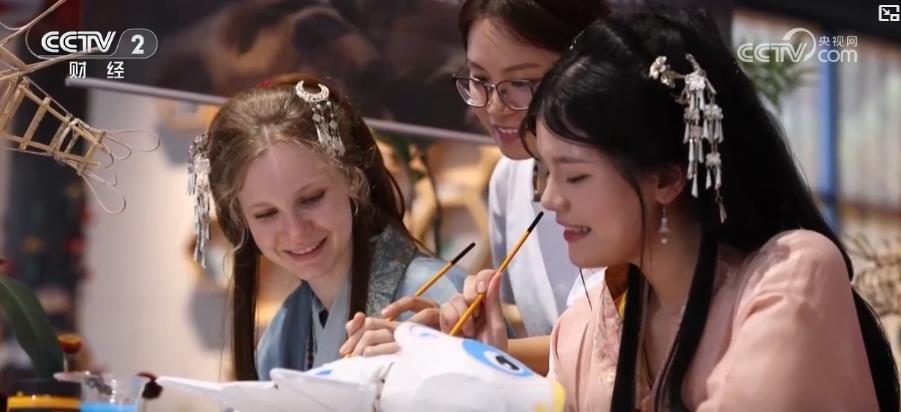 在安徽黃山的西溪南村,一批外國游客也正在體驗漢服妝造,當?shù)剡舉行了體驗非遺魚燈的制作活動,介紹魚燈的歷史傳說、傳承發(fā)展、制作工藝等知識。