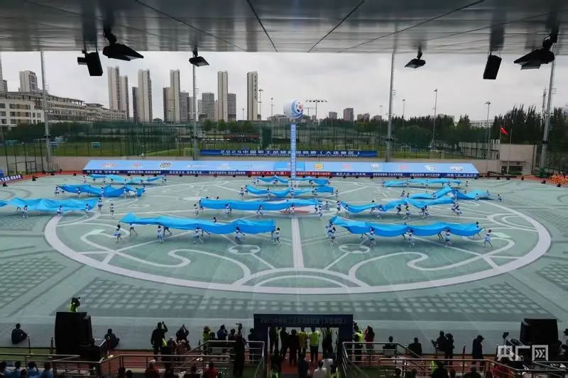 揭幕戰(zhàn)開始前,大連職工傾情演繹的主題表演《大海啊故鄉(xiāng)》,成為表演節(jié)目中的一抹亮色,舞臺上藍(lán)色海浪涌動,職工青春的活力與濱城的海韻完美交融,將開放包容的城市氣質(zhì)化作澎湃的視覺交響,藝術(shù)化呈現(xiàn)了大連職工足球發(fā)展的歷史。健排舞《我愿全速奔向你》,原創(chuàng)舞蹈《大連雄風(fēng)》,歌舞表演《奔跑》等節(jié)目充分展示了大連城市發(fā)展活力和開放文明新形象,展現(xiàn)了大連職工昂揚(yáng)向上、積極進(jìn)取的精神風(fēng)貌。伴隨著激昂的樂曲,來自大連市實(shí)驗(yàn)小學(xué)和沙河口區(qū)東北路小學(xué)兩所國內(nèi)知名足球特色學(xué)校的孩子們,帶來了精彩的顛球表演,孩子們個(gè)個(gè)精神抖擻、技藝嫻熟,把現(xiàn)場的氛圍推向高潮。