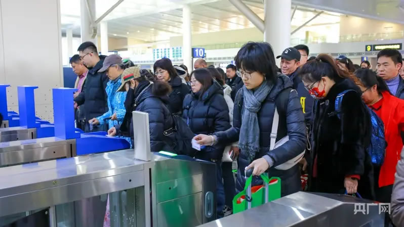 春運(yùn)首日呼和浩特火車東站旅客檢票進(jìn)站(央廣網(wǎng)記者 楊亞?wèn)| 攝)
