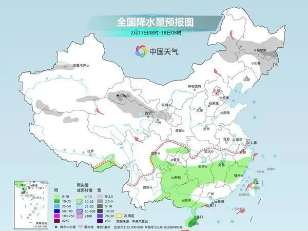 今天是春節(jié)假期第一天,我國(guó)降水增多增強(qiáng),江漢、江南等地部分地區(qū)降雨時(shí)還可能伴有強(qiáng)對(duì)流天氣,陜西、河南等地或現(xiàn)降雪。同時(shí),寒潮將自北向南影響中東部,不少地方迎換季式降溫,江南西部等局地降溫幅度可超12℃。