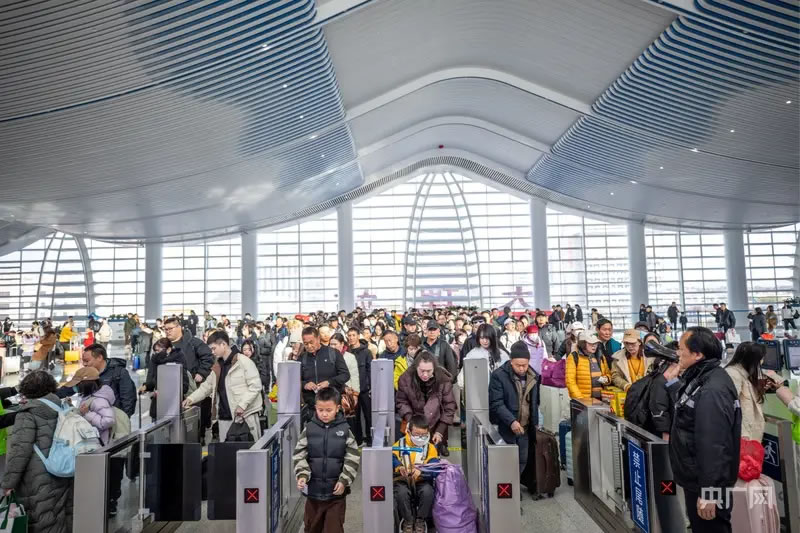 面對激增客流,鐵路部門動態(tài)優(yōu)化列車開行方案,日均開行旅客列車超470列,累計增開臨客列車340列,并在客流高峰期開行夜間動車26列,暢通省內外客流通道。2月22日至24日迎來返程客流高峰,三天日均發(fā)送旅客51.6萬人次,其中2月23日發(fā)送旅客達53.9萬人次,創(chuàng)假期單日發(fā)送量新高。