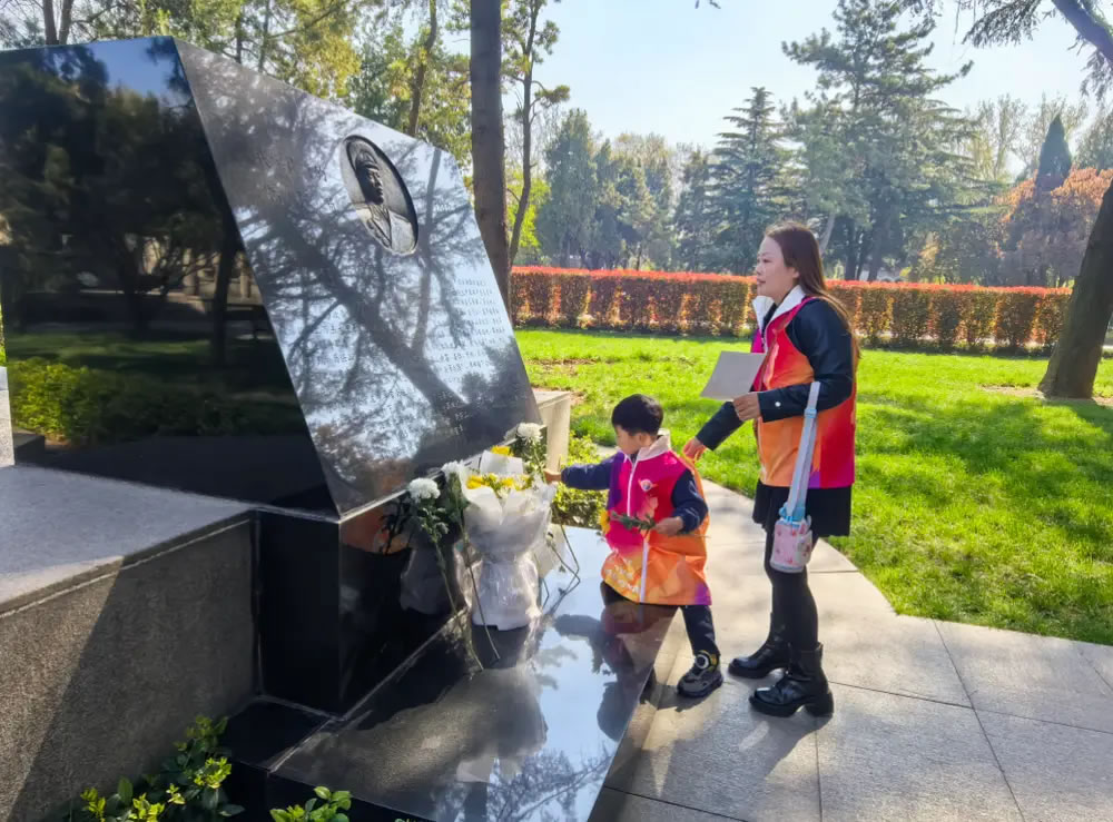 4月4日,當王俊皓手持白菊走到華東革命烈士陵園里的漢斯·希伯墓前時,他已經完成紅色知識科普、背詩、認旗幟等關卡,闖過了“尋英魂傳薪火 拼紅韻寄清明”活動的前三關后,將鮮花輕輕放到了革命烈士的墓前。