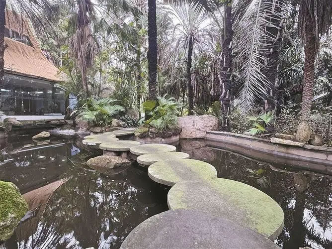 走進(jìn)植物園棕櫚植物區(qū),在導(dǎo)航軟件搜索“棕野云澗”,循著指引便能看見一串圓盤狀石橋貼著水面蜿蜒向前,橋邊棕櫚高低錯落,粗壯樹干與垂落枯葉交織出一片幽深景致。站在橋頭細(xì)看,熟悉感撲面而來——這正是最近被不少網(wǎng)友反復(fù)“考古”的1986版《西游記》取景地之一。不少網(wǎng)友留言說,“看了這么多年《西游記》,第一次知道竟然在廈門拍過”“怪不得植物園這么眼熟”。也有一些本地人表示,這并非“冷知識”,只是時間過去太久,許多人一時沒把童年記憶和眼前景象對上號。