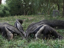 大食蟻獸展區(qū)位于鱷魚島的北面緊鄰飛熊山莊,大食蟻獸是生活在南美洲的一種奇特動物,它們的長相非常獨特,有著尖尖的腦袋和一把“大掃帚”尾巴。大食蟻獸室內展廳設計有地暖和空調,一到冬天就會開啟,將室內溫度維持在15攝氏度左右,為保證空氣流通,白天亦會開窗通風。其次,在大食蟻獸睡覺區(qū)域鋪墊了木板,能減少熱量流失,它們很喜歡在木板上盤成圈睡覺。冬天的時候,大食蟻獸的食物會提前預熱下,例如牛奶提前泡暖,酸奶放置到常溫再使用。