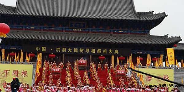 為進一步弘揚根祖文化,凝聚血脈親情,促進經(jīng)濟發(fā)展,從1991年開始,縣委、縣政府高度重視,精心策劃,連續(xù)成功舉辦了十九屆大槐樹尋根祭祖節(jié)。特別是近年來,歷屆縣委、縣政府依托豐富的旅游資源優(yōu)勢,著力打造文化旅游品牌,實施“旅游強縣”戰(zhàn)略,突出“尋根祭祖,老家體驗”這一活動主題,每年的大槐樹尋根祭祖節(jié)內(nèi)容豐富多彩,規(guī)模日臻擴大,影響遍及全球。2007年由山西省政府和臨汾市政府共同主辦的第十七屆中國洪洞大槐樹尋根祭祖節(jié)是歷屆祭祖節(jié)規(guī)模最大、規(guī)格最高、參加人數(shù)最多的一次。中央電視臺新聞頻道、香港鳳凰衛(wèi)視、山西電視臺綜合頻道、臨汾電視臺、洪洞電視臺五家電視臺同時現(xiàn)場直播,這場具有濃郁山西民俗特色、氣勢磅礴、場面宏大的祭祀表演活動,隨著衛(wèi)星電波傳遍了中國大地、世界各地,本次祭祖活動被評選為“人民網(wǎng)2008年度最受關(guān)注的各地節(jié)慶”。2008年的第十八屆中國·洪洞大槐樹尋根祭祖節(jié)更是特色鮮明,內(nèi)容豐富,氣勢宏大,文化突顯,被省文明委列為“中國清明節(jié)”系列活動的重點項目。同年,“大槐樹祭祖習(xí)俗”被列入第二批國家非物質(zhì)文化遺產(chǎn)保護名錄。第十九屆中國·洪洞大槐樹祭祖節(jié)在總結(jié)往屆成功舉辦的基礎(chǔ)上,本著“傳承、提升、節(jié)儉、高效”的宗旨,由縣委領(lǐng)導(dǎo)、政府主導(dǎo)、政協(xié)牽頭、部門實施、社會參與,形式新穎,亮點突出。本次祭祖活動被省文化廳列入省首批民族傳統(tǒng)節(jié)日保護名單。