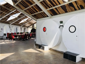 蝸牛公寓位于云岡石窟景區(qū)東山,是東山菩提藝術(shù)區(qū)的一部分,由云岡石窟研究院主導(dǎo)創(chuàng)意,用廢舊水泥管、廢舊鋼鐵等廢舊材料打造出來的綠色環(huán)保寫生建筑。走進(jìn)“蝸牛公寓”,內(nèi)含會(huì)客廳、28間臥室,洗漱臺(tái)、衛(wèi)生間,其中地下公共部分還配有電影放映室、臺(tái)球室、酒吧、咖啡廳等公共休閑娛樂設(shè)施,長(zhǎng)廊的墻壁,藝術(shù)家或藝術(shù)院校學(xué)生可以隨意涂鴉。這個(gè)特別隨意且有藝術(shù)范兒的空間,為到云岡石窟景區(qū)寫生創(chuàng)作、旅游休閑的人們提供了優(yōu)質(zhì)舒適的住宿、創(chuàng)作、娛樂空間。