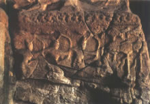 穿過神柱林立的佛光大道向西,呈現(xiàn)于世人眼前的是兩面相對(duì)的扇形皇家禮佛浮雕墻。這組正面相對(duì)的浮雕墻總體呈圓弧狀,長(zhǎng)約20米、高約4米,畫面構(gòu)圖完美,雕刻細(xì)致,以高浮雕的形式,生動(dòng)表現(xiàn)了北魏皇家盛大的帝后禮佛圖。車轔轔、馬蕭蕭的現(xiàn)場(chǎng)氣氛,充分再現(xiàn)了北魏當(dāng)時(shí)皇帝、皇后前往禮佛的莊嚴(yán)肅穆的宏大場(chǎng)面,這種場(chǎng)面讓人自然聯(lián)想到1500多年前云岡石窟作為皇家寺院曾經(jīng)的輝煌,讓人舉目流連。