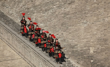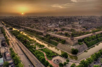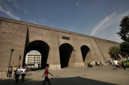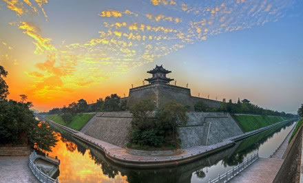 雄偉壯觀的西安城墻已成為市區(qū)最吸引人的觀光勝地之一。沿城墻外側(cè)已建成“環(huán)城公園”,成為城市居民晨練的絕佳活動(dòng)場(chǎng)所。 |