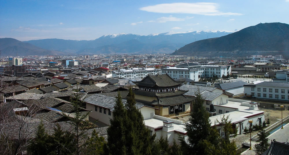 該寺又稱歸化寺,距中甸縣城5公里,是一座古鎮(zhèn)規(guī)模的古堡群建筑。于公元1679年(藏歷第十一繞迥陰土羊年)興建,公元1681年(陰鐵雞年)竣工。五世達(dá)賴?yán)镉H賜名“噶丹·松贊林”。