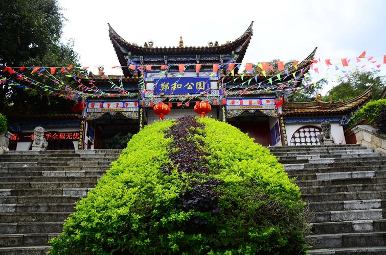 鄭和公園座落在滇池風(fēng)景區(qū)南岸,晉寧區(qū)城的月山上,始建于1978年,原名為月山公園,1980年為了紀(jì)念鄭和,將月山公園更名為“鄭和公園”,占地面積16.67公頃(250畝)。公園以鄭和文化為主題,被列為昆明新十六景之一,名為“月山帆影”,1988年命名為滇池國(guó)家重點(diǎn)風(fēng)景名勝區(qū),園內(nèi)主要有鄭和雕像、三寶樓、鄭和碑林、馬哈只墓、鄭和紀(jì)念館、鄭和故居等景點(diǎn)。其中,“馬哈只墓碑”為國(guó)家級(jí)重點(diǎn)文物保護(hù)單位,“鄭和紀(jì)念館”為云南省首批愛(ài)國(guó)主義教育基地。