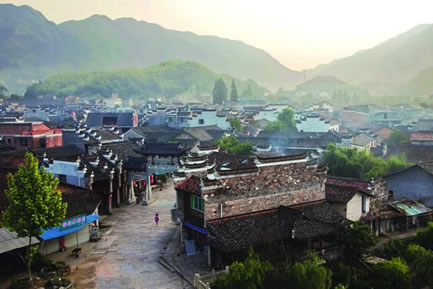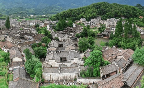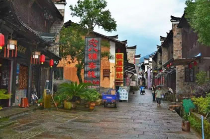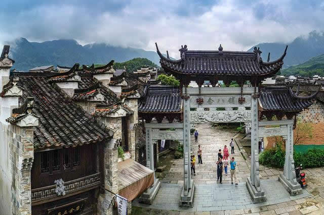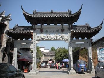 古鎮(zhèn)的大戶有曹、姜、楊、金四家。他們圍繞著宗族而居,至今還保留著36幢完整的古民居大院。站在老街上,最富有特色的是家家戶戶的門楣。門楣多為樓閣式,由梁、枋、檐、望板和垂簾虛柱構(gòu)成四柱三樓式。各個(gè)部件都有精細(xì)的木雕裝飾,題材多為福祿壽、合和二仙等吉祥物。這木制的門楣和江南其他地區(qū)的磚雕門樓有著截然的反差,使人走在這老街之上,無不被這景色所吸引?催@徽式的馬頭墻、浙式的屋脊、贛式的檐櫞、閩式的土墻,其內(nèi)涵的豐富已足以使建筑學(xué)家所驚嘆。